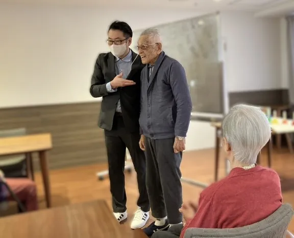 105歳のお誕生日をむかえられ、「朝の体操」時、皆様の前で施設長よりお祝いの表彰が行われました。