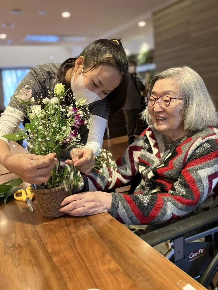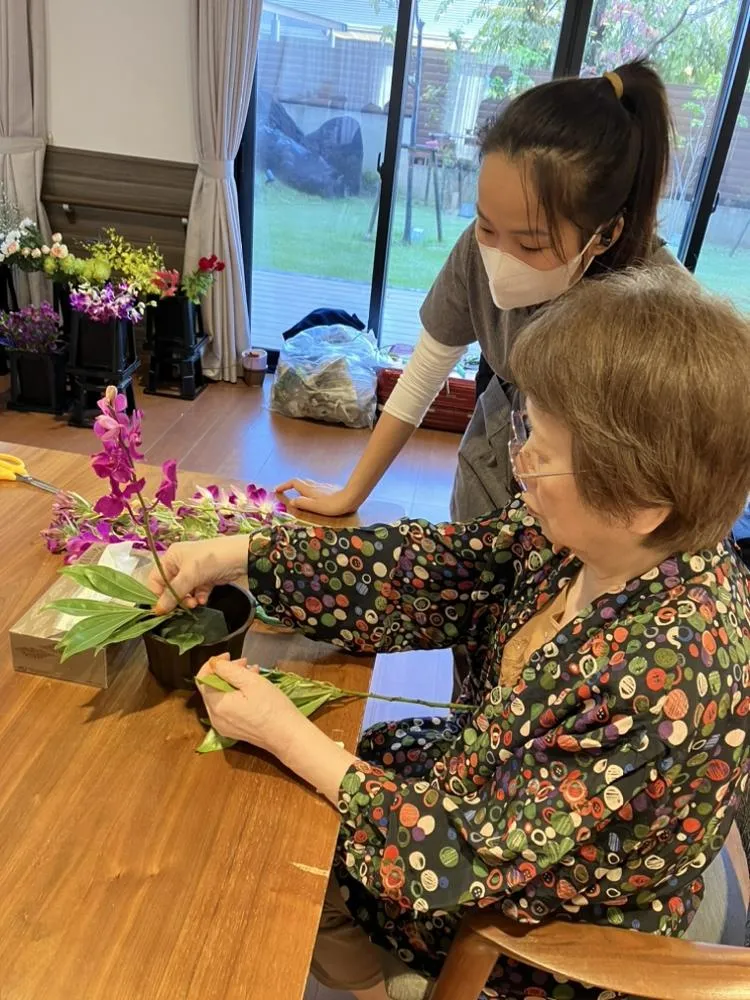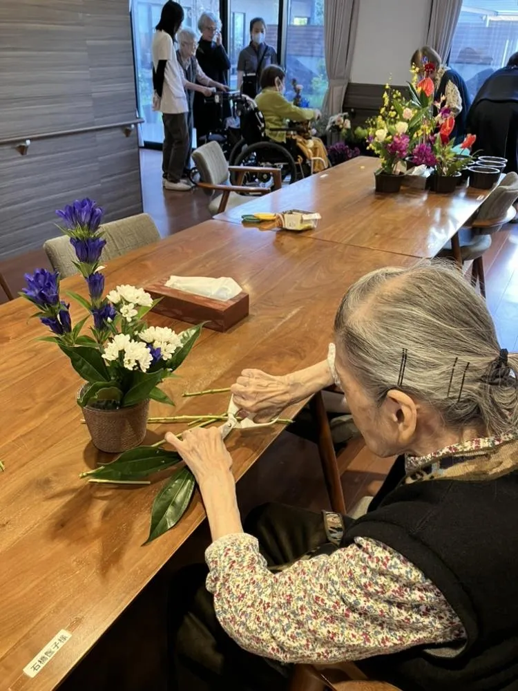 お花屋さんが来て、自分の好きなお花をチョイス。自分の部屋に飾る花束を各々、思い思いに活けていきます。満足いくレイアウトになると嬉しいですね。