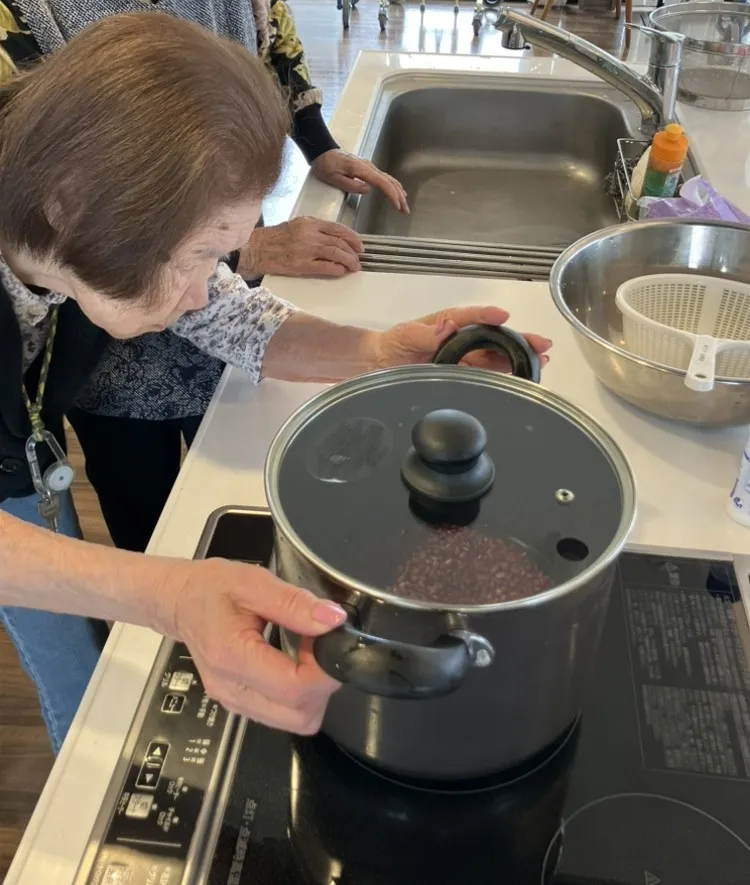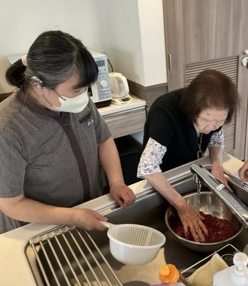 ケアマネジャー主催 “自分で作って食べる会” の第3弾として、皆様でおはぎ作りを行いました!