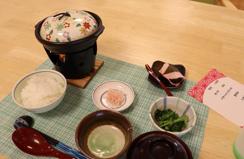 本日の特別食は、海鮮鍋を召し上がって頂きました。テーブルの上で、お鍋がグツグツ煮えてきました。美味しそうな匂いに、食堂全体が包まれています。冬の、お鍋は心もカラダもポッカポカになりますね!デザートは桜餅、桜の香りが広がります。春は、もうすぐです。