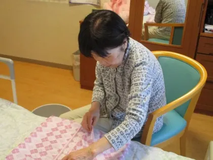 毎日夕方に洗濯物(エプロン)畳みを率先して行っております。