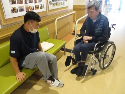 お客様と足踏みの運動をしています。