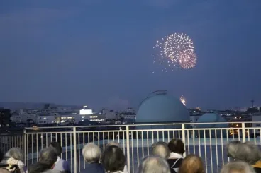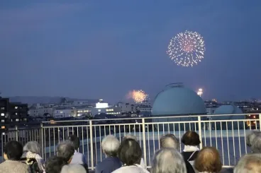 お客様と施設の屋上で、かき氷を食べながら鑑賞しました。