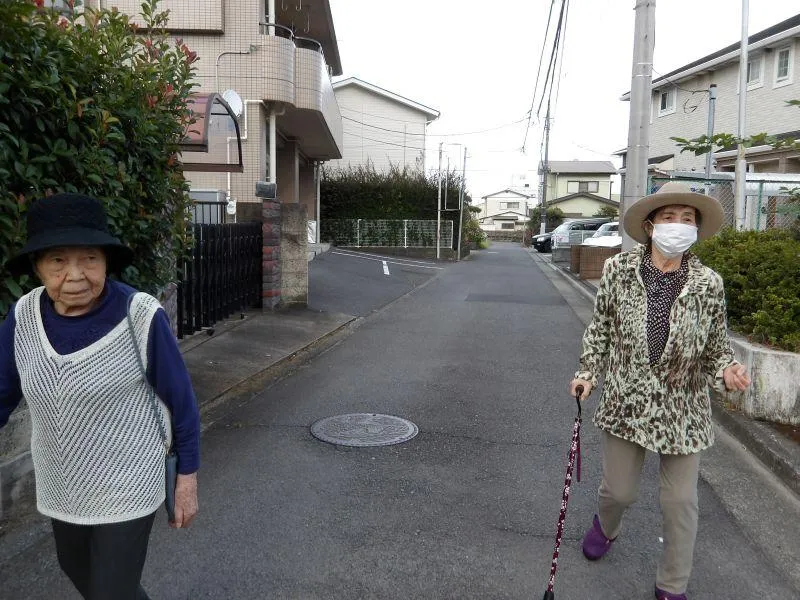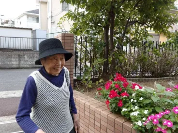 心地よい秋風が吹くある日、仲の良いお二人のお客様とご一緒に、施設の周りをお散歩に出かけました。