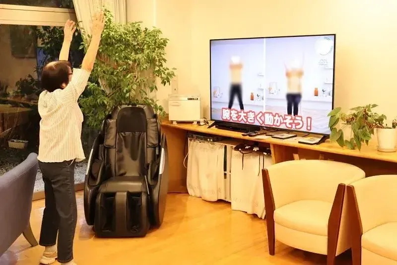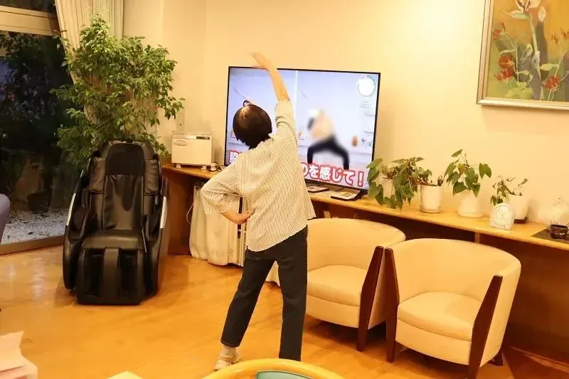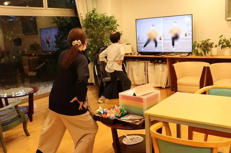 スタッフも後ろで一緒にワンツー♪ワンツー♪