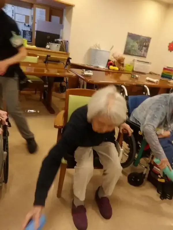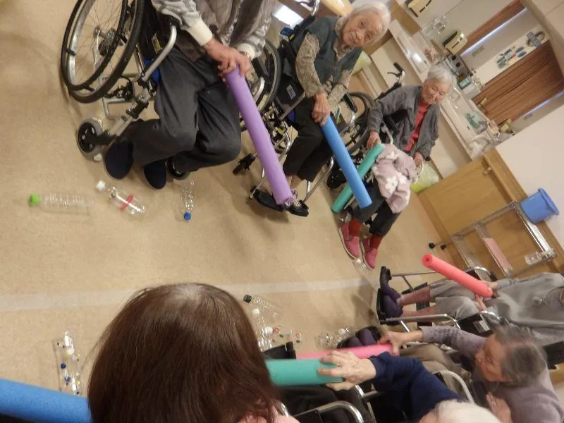 午後のレクリエーションの時間に、ペットボトルを使ったゲームを楽しみました。二つのチームに分かれ、皆さまの笑顔と真剣な表情がとても印象的でした。あたたかい交流が生まれ、フロアには笑い声が沢山広がりました。これからも、心がほぐれる時間を大切にしてまいります。