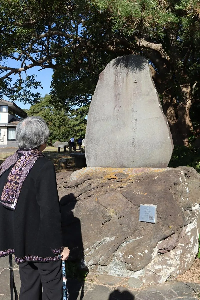 真鶴半島の先端にあるケープ真鶴へ到着。有名な与謝野晶子の歌碑を前に感動!