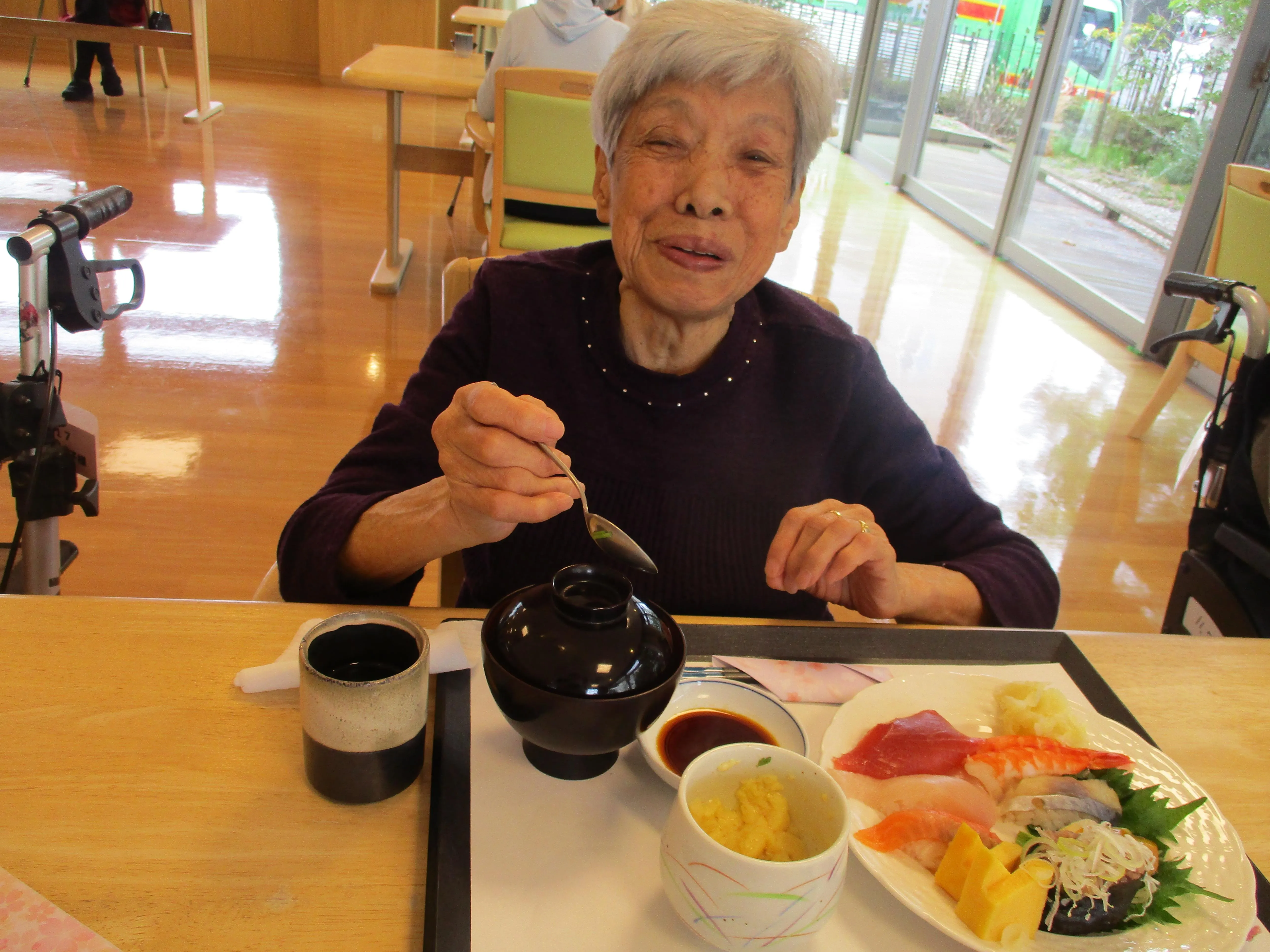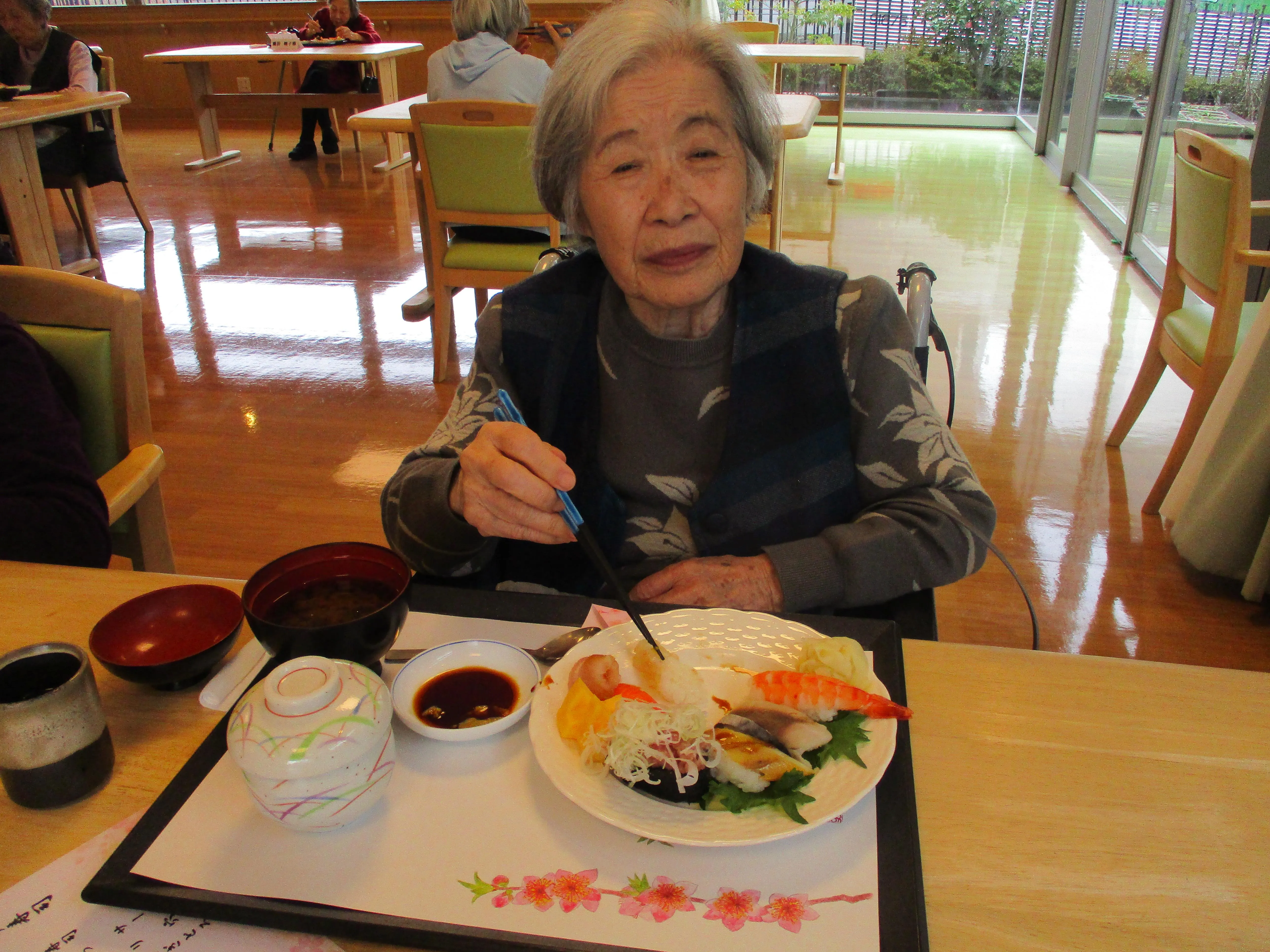 今回のメニューは皆様に大好評のお寿司でした。配膳時には、感嘆の声も聞こえました。