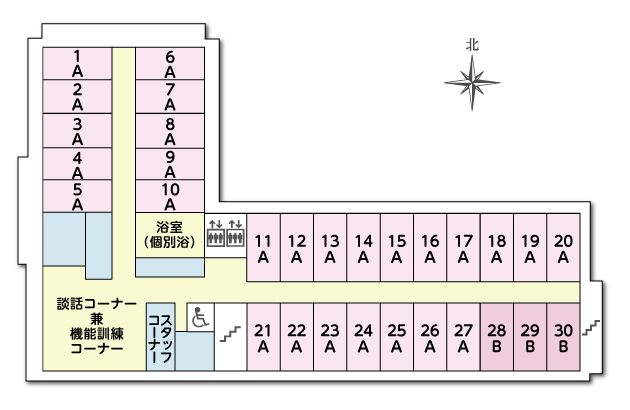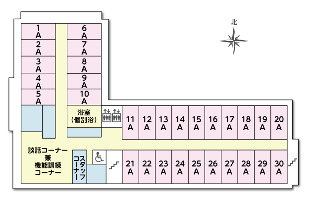 - ※適切な介護サービスをご提供するために一定期間を設け、医師の意見を聞いたうえで居室を変更させていただく場合があります。この場合ご本人及び、身元引受人の同意のうえで実施いたします。居室タイプにより居室料相当額が変更となる場合があります。
