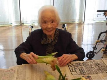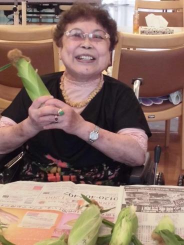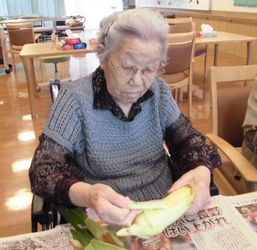 皮をむいていただいたとうもろこしは、その日のおやつに茹でて提供させていただきました。