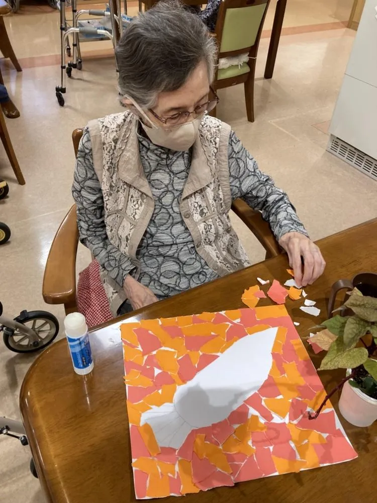 エントランスへ飾ってい季節の展示品。実はお客様と一緒に作っています。パーツを組み合わせて作る作品なので、作っているときはどんな作品になるのかわかりません。完成し展示された時、「あ~こうなるんだね」と驚かれています。今回はどんな作品になるのか・・・完成しましたら、ご報告します。