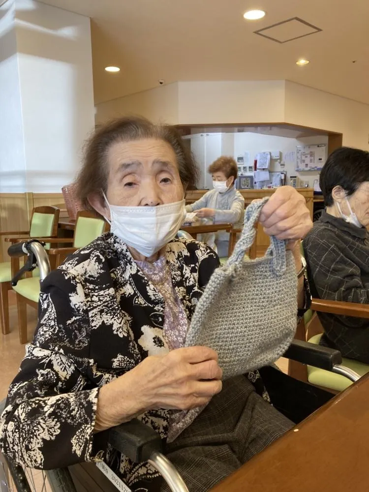 定期的に編み物の時間を設け、お客様が思い思いの作品づくりを楽しんでおられます。