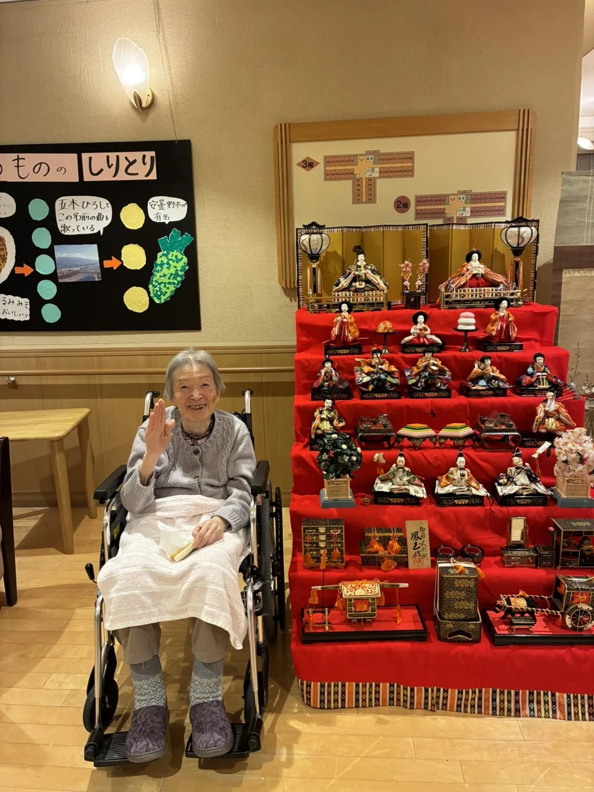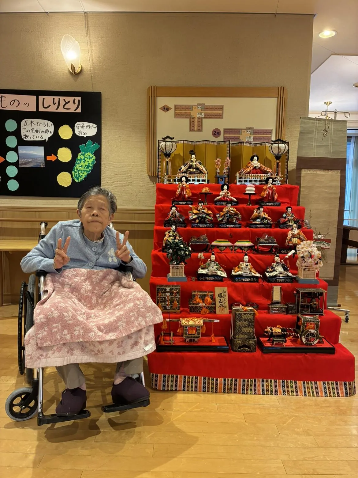 今年もエントランスに、大きなひな壇ができました。お客様のご協力もあり、きれいに飾ることが出来ました。「懐かしい」「可愛いね」など、お話ししながら飾っていました。