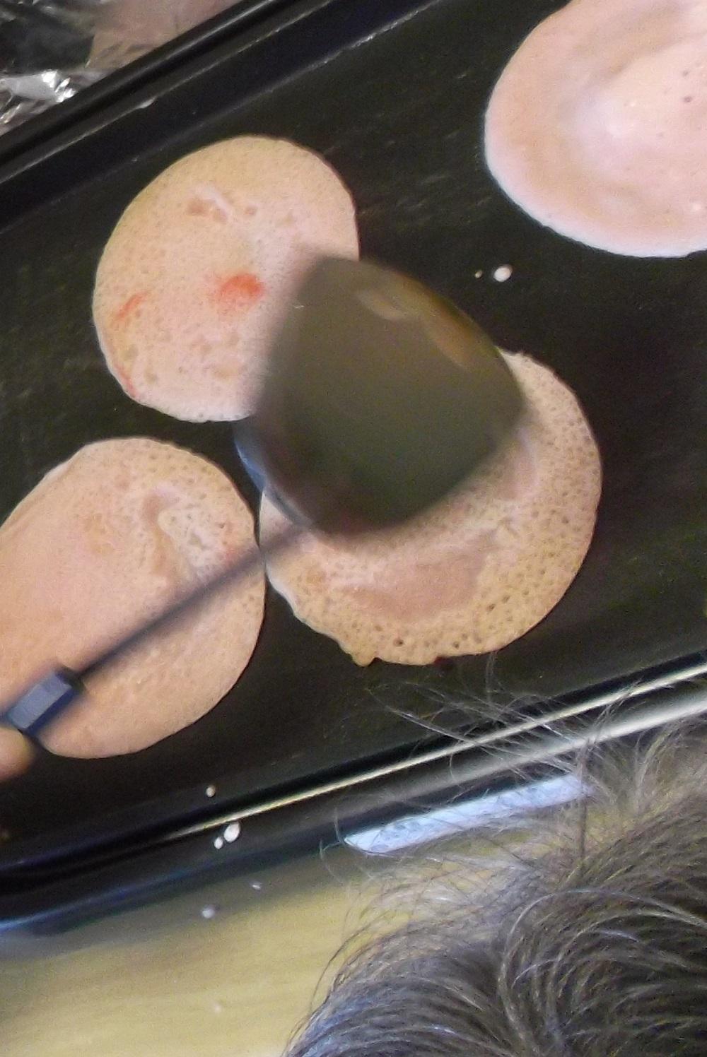 3月のおやつ作りはさくらもちです。生地はホットプレートで焼きました。