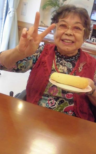 「若者が食べる食べ物みたいだね。」「私たちが子供のころはこんなおやつなかったよ。今は贅沢だなあ!あははは!」とボリュームたっぷりのオムレットケーキの完成です。