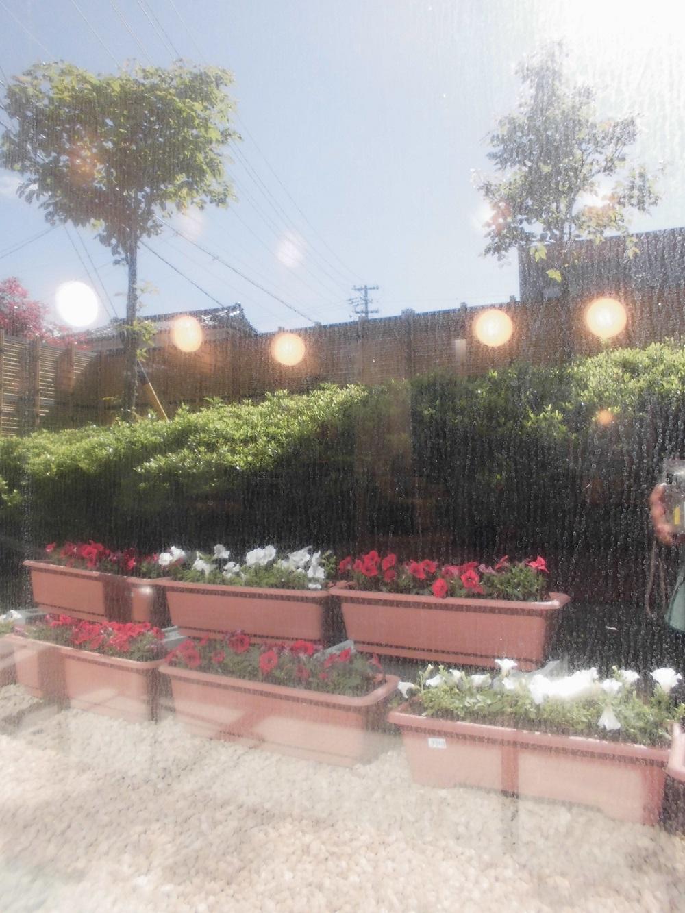 プランターにお花を活けて、花壇を作りました!入浴中に楽しんでただこうと思い、浴室の窓の外に作りました。二枚目は、浴室の中からの写真です。お風呂が好きな方は大勢いらっしゃいます。入浴時間をもっと楽しんでいただけたらと思います。