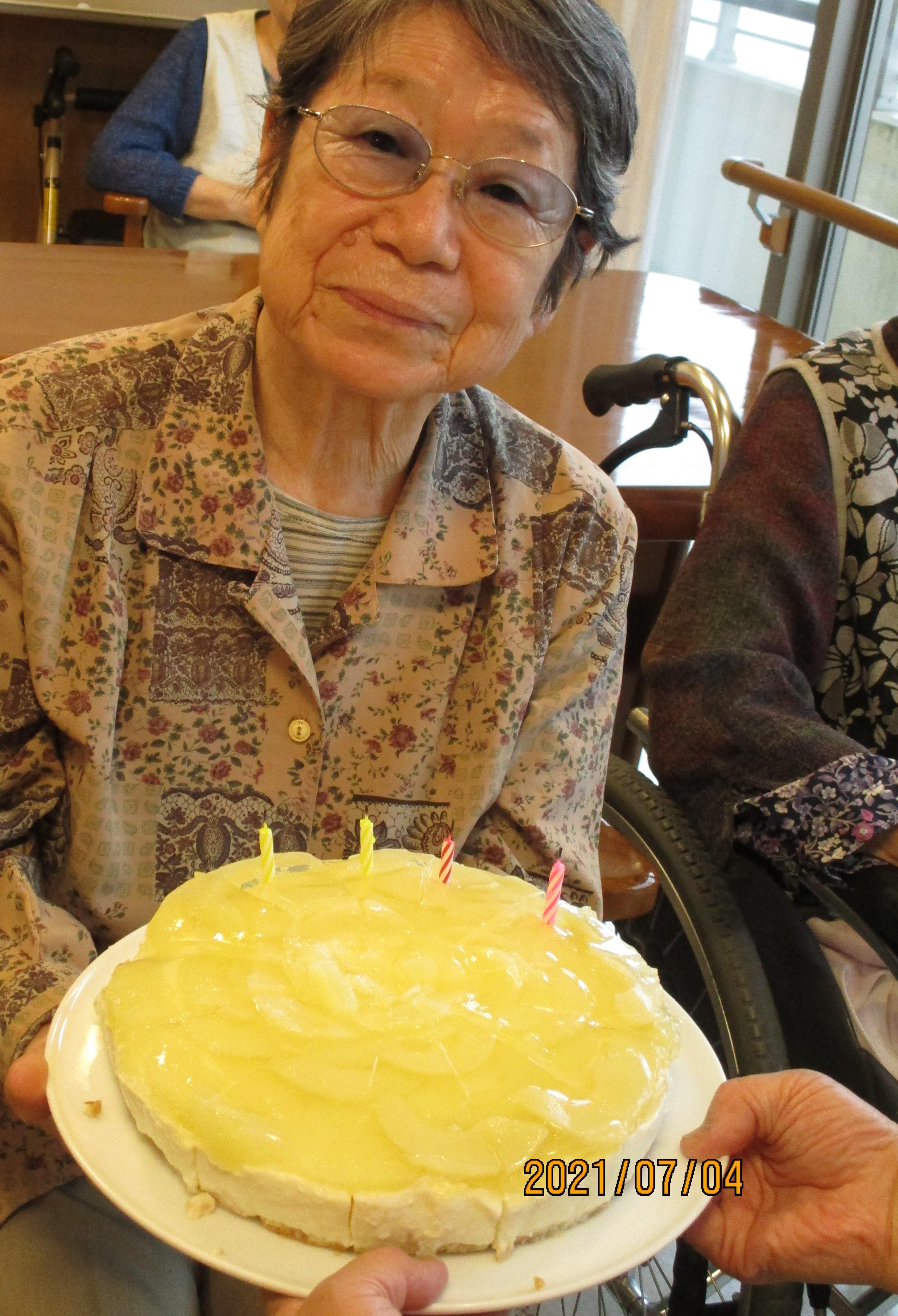 7月生まれのお誕生日会をしました!今月のケーキは「白桃ヨーグルトムース」桃がおいしい時期になりましたね!みなさんでおいしく召し上がりました。
