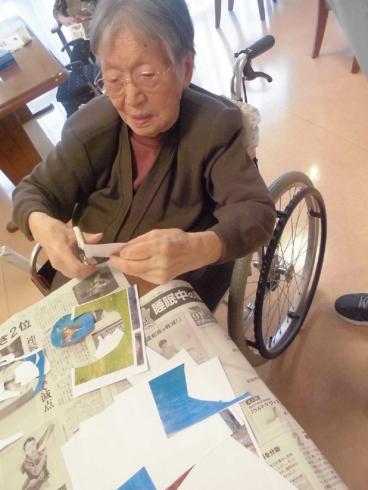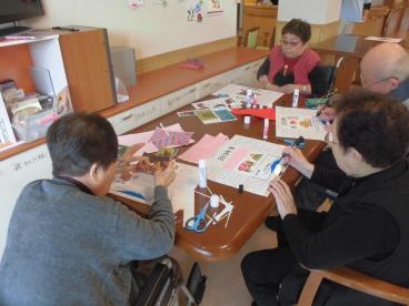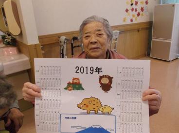 イノシシ年ということで、イノシシのイラストや写真の中から好きなものを切り取って、カレンダーに貼り付けていただきました。