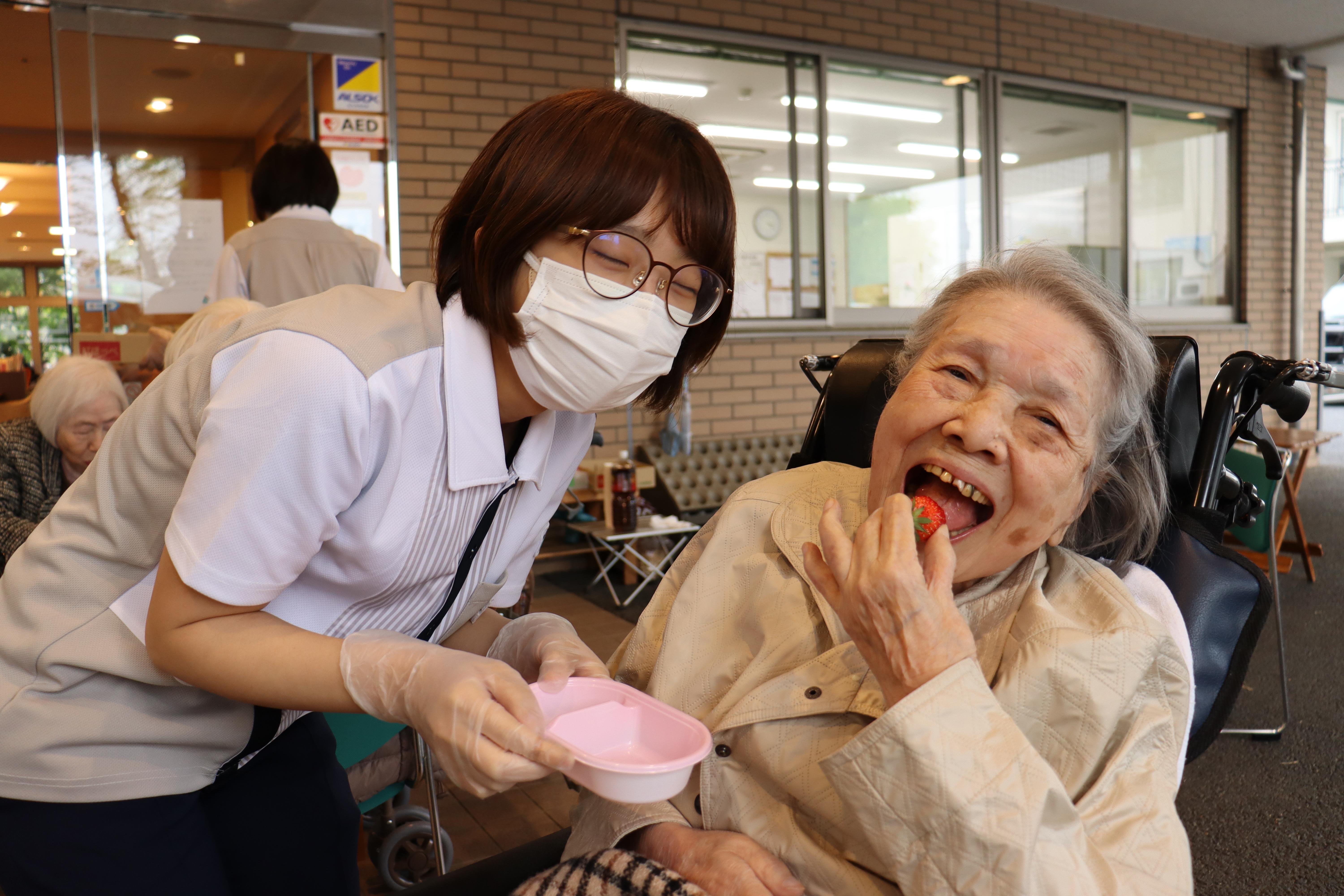 施設の敷地内で、イチゴ狩りをしました!
