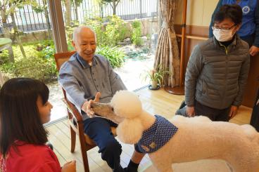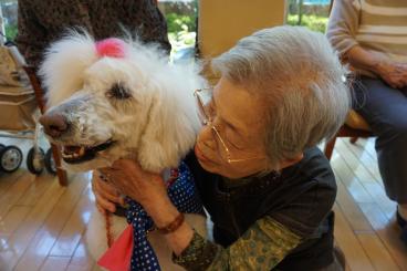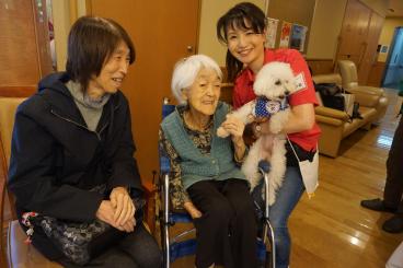 ワンちゃんたちの可愛さと賢さに、ツクイ・サンシャイン相模原のお客様方は、昔、飼われていた犬を思い出したり、ふわふわの感触に、多くの笑顔がみられていました。