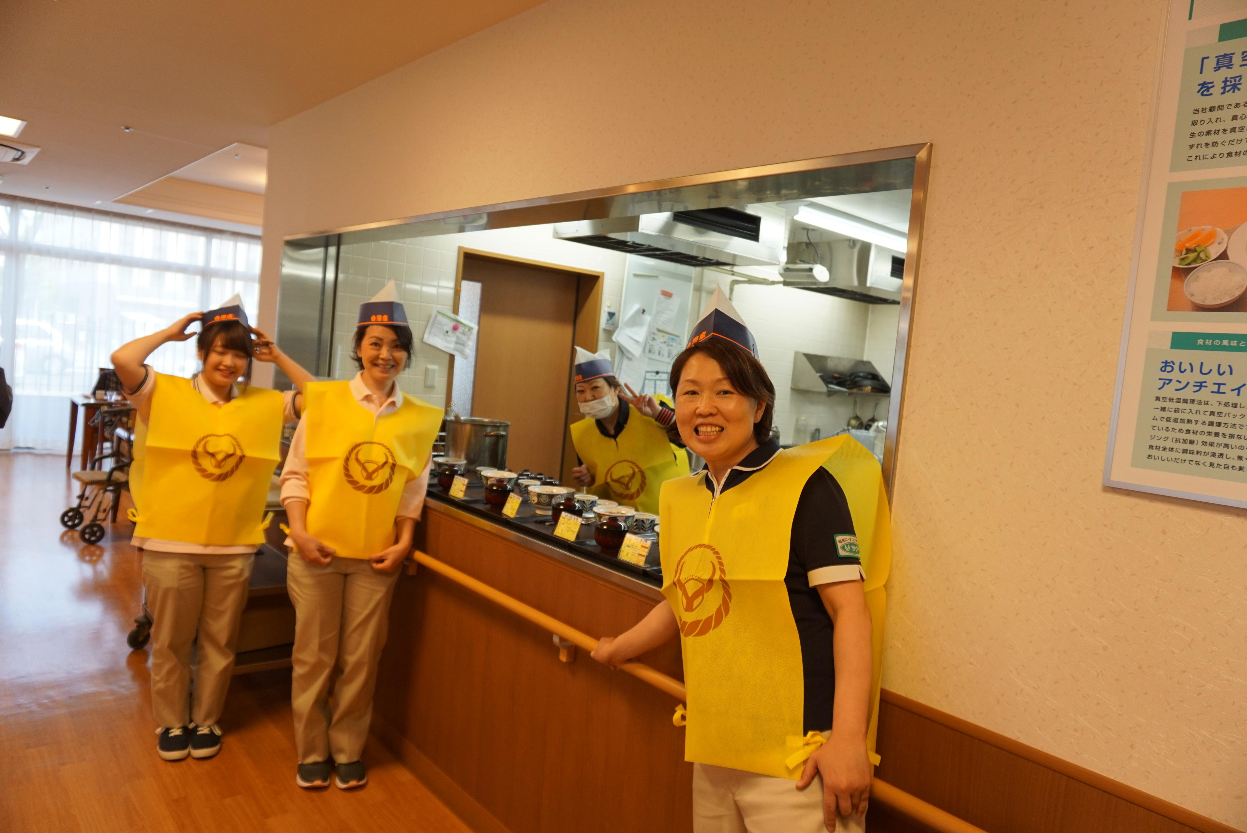 普段なかなか召し上がる機会のない「吉野家の牛丼」。本日はツクイ・サンシャイン相模原の職員も店員さんに扮し、“うまい、やわらか、食べやすい”牛丼を提供しています。