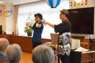 お客様・ご家族様は若いエネルギッシュな動きに目を見張り、音楽に合わせてリズムをとっていました。