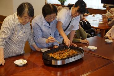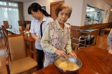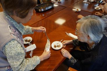 みなさま協力して、混ぜたり、焼いたり、おしゃべりしたりと、工程も楽しみながら焼き上げていきます。