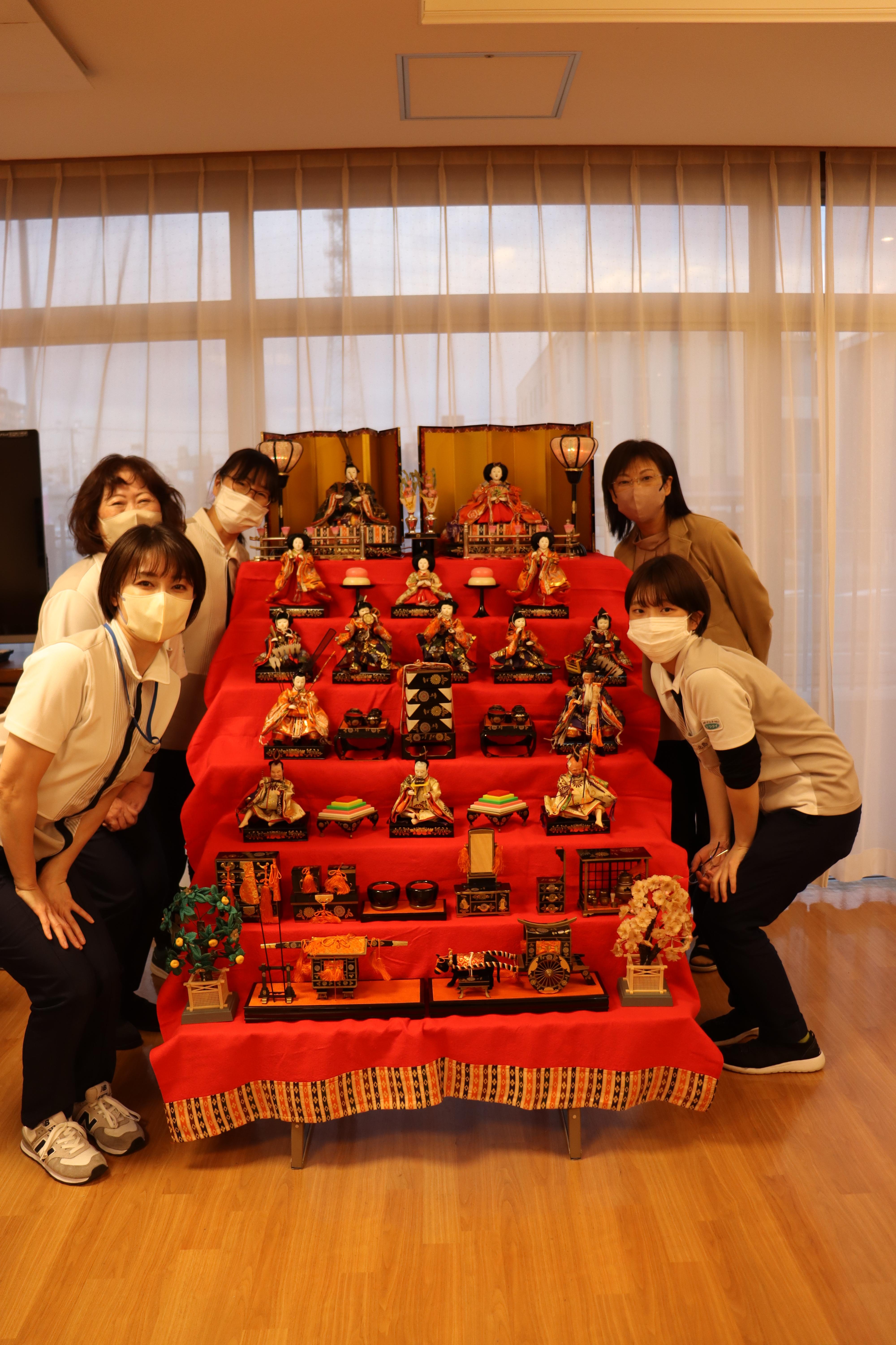 もうすぐひな祭りということで、施設長とスタッフで雛人形を飾りました。とてもきれいな雛人形で、飾り付けをしながらスタッフも楽しい時間を過ごすことが出来ました。