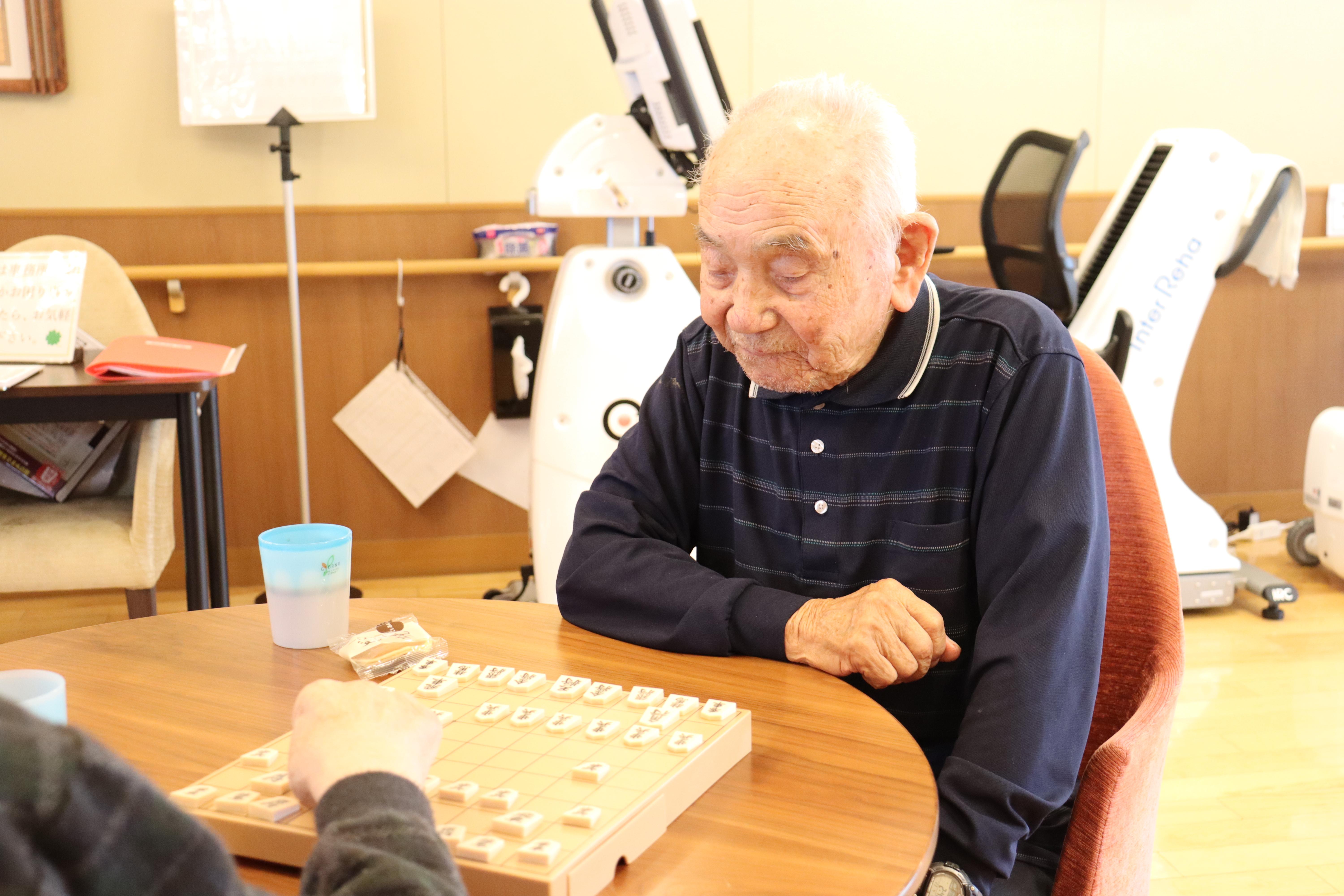 将棋好きの方が機能訓練ルームに集まって将棋を楽しまれました。真剣勝負!本日の勝敗はどうだったでしょうか・・・