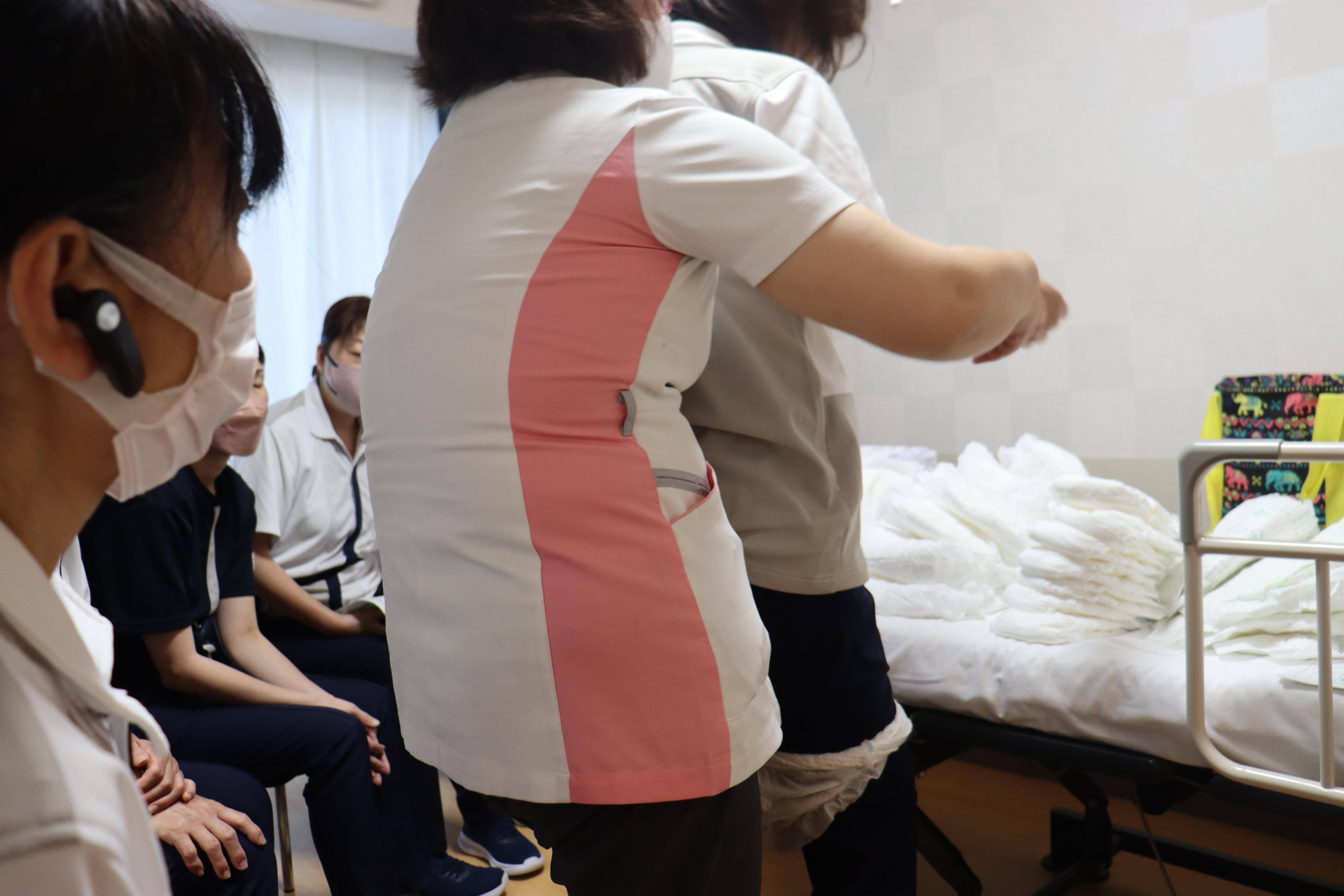 ユニ・チャーム株式会社 小笹様の指導の元、おむつ研修を行いました。
