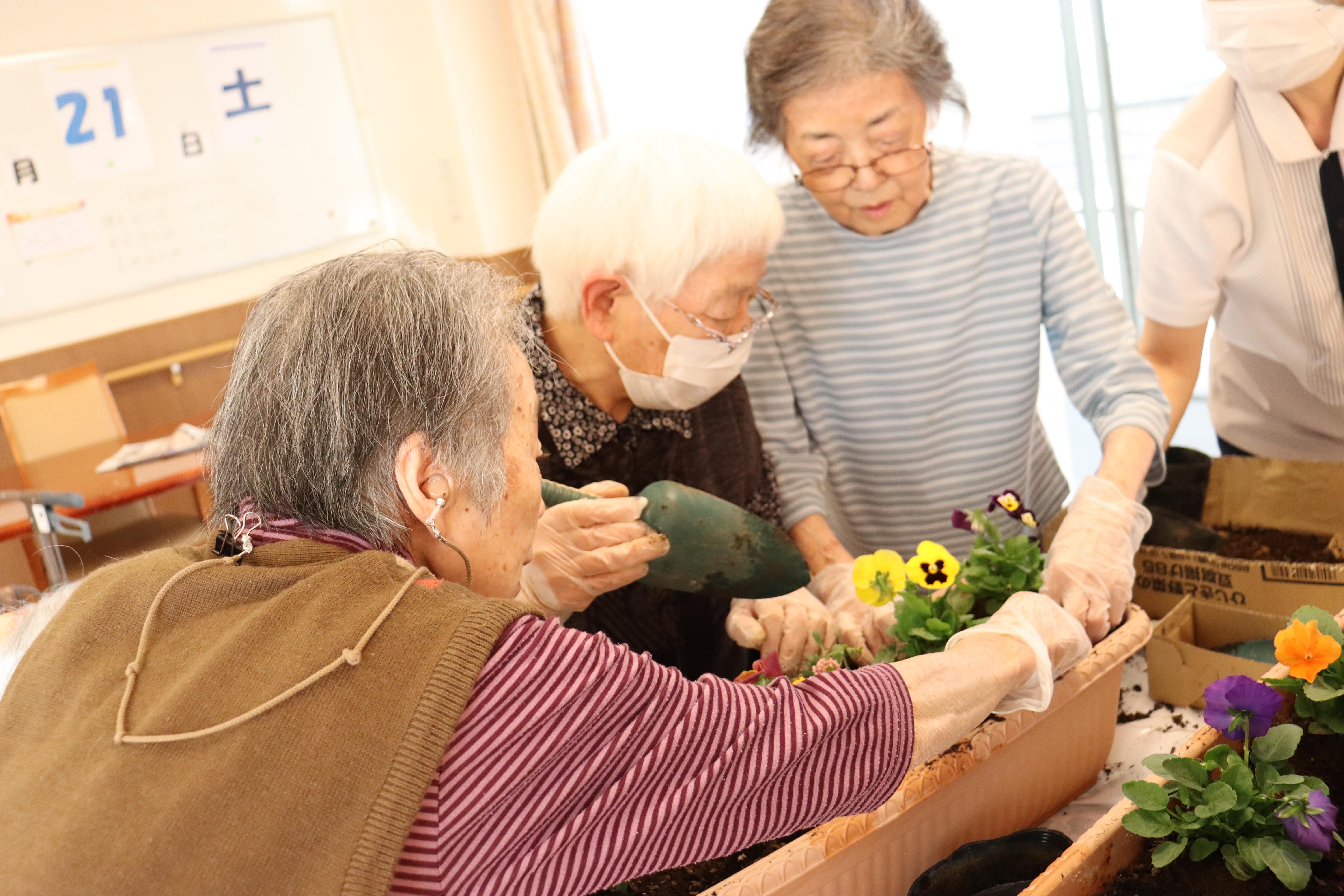 皆さんで協力して、苗と球根を植えました。
