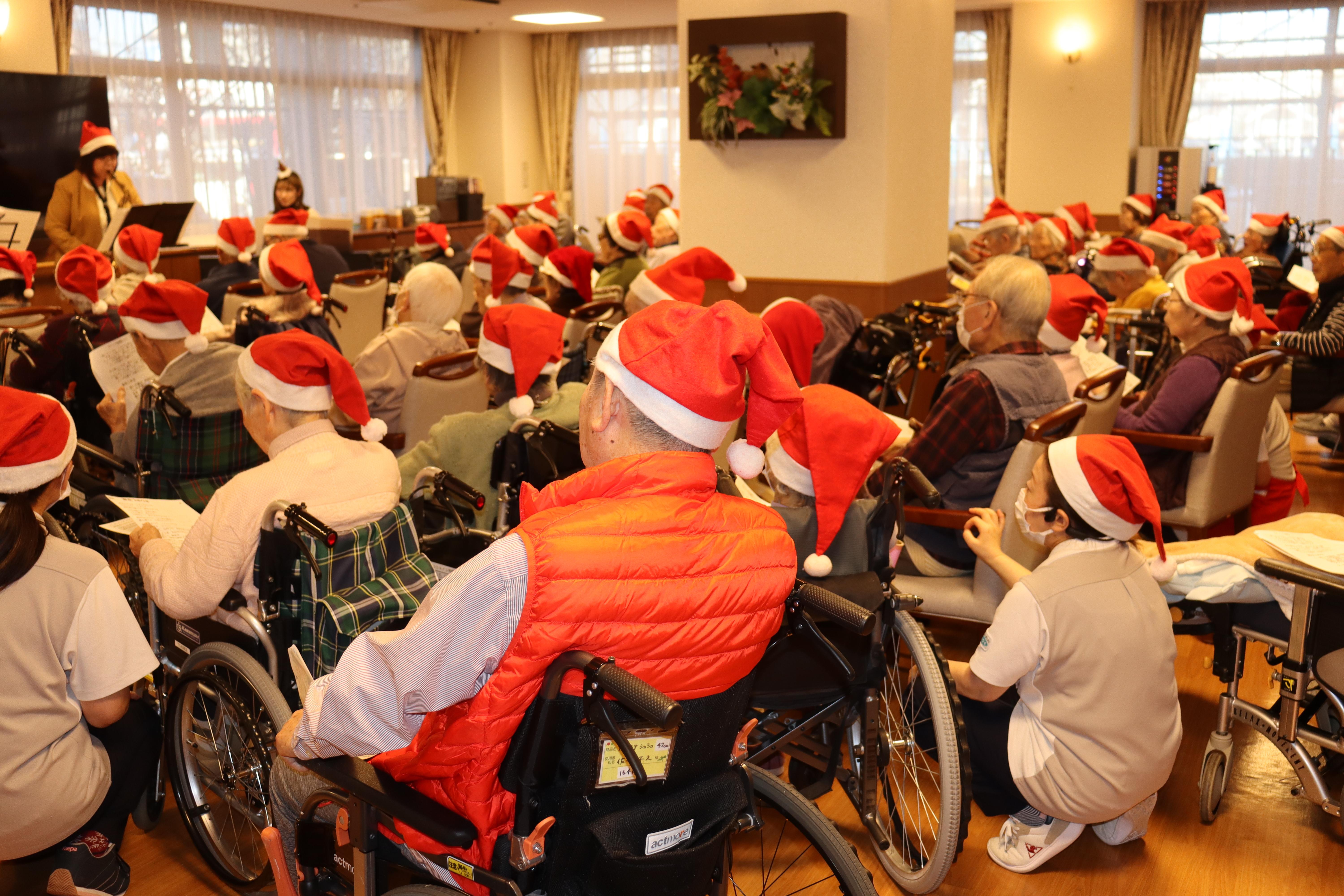 歌詞カードを見ながら歌を歌ったり、フルートの美しい音色で奏でられたクリスマスソングを楽しまれていました。
