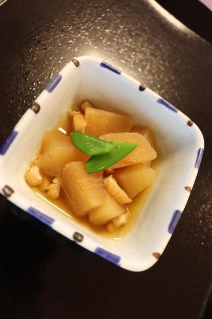 副菜は春キャベツのおひたし、あさりと大根の煮物、抹茶わらび餅、白菜と長ネギの澄まし汁。