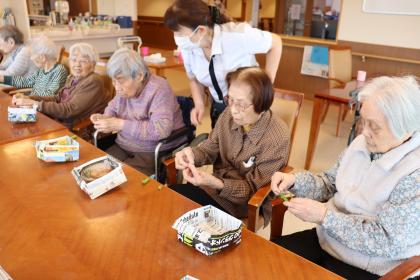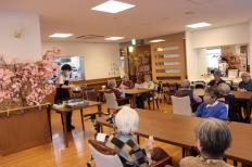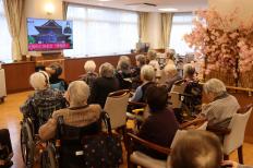 長野県出身のお客様は、『どこを紹介してくれるのかしら~』ととても楽しみにしてらっしゃいました。また、口腔体操を兼ねて歌った『北国の春』では涙ぐむお客さまも・・。普段に増して、皆さま歌声が響き、心の中にあるそれぞれの故郷を想われているのかなと感じました。