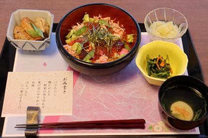 まぐろやえび、アボカドや錦糸卵・・豊かな彩は、そのまま口の中でも鮮やかな美味しさを広げてくれます。ちらし寿司は、皆さまのお好きな料理の一つです。