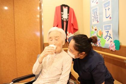 入浴後は冷たい甘酒をお楽しみ頂きました。