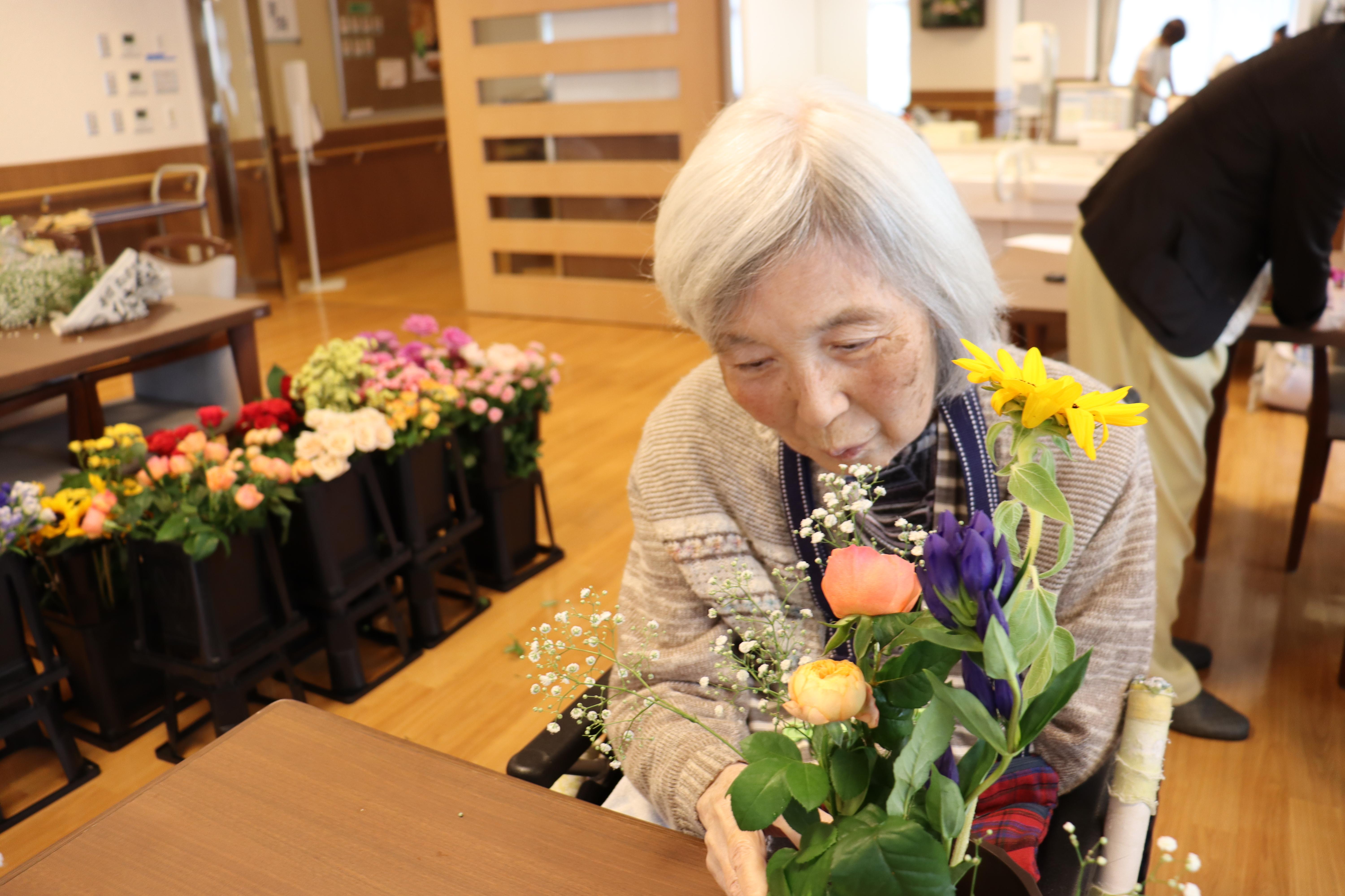 今回フラワーアレンジメント教室がリニューアルし、数種類のお花の中からお好みのお花を選び、先生のアドバイスを受けながら自由に生けていただけるようになりました。