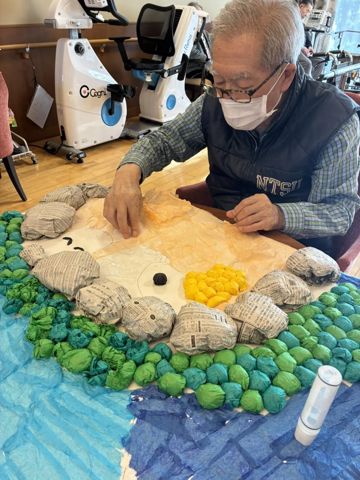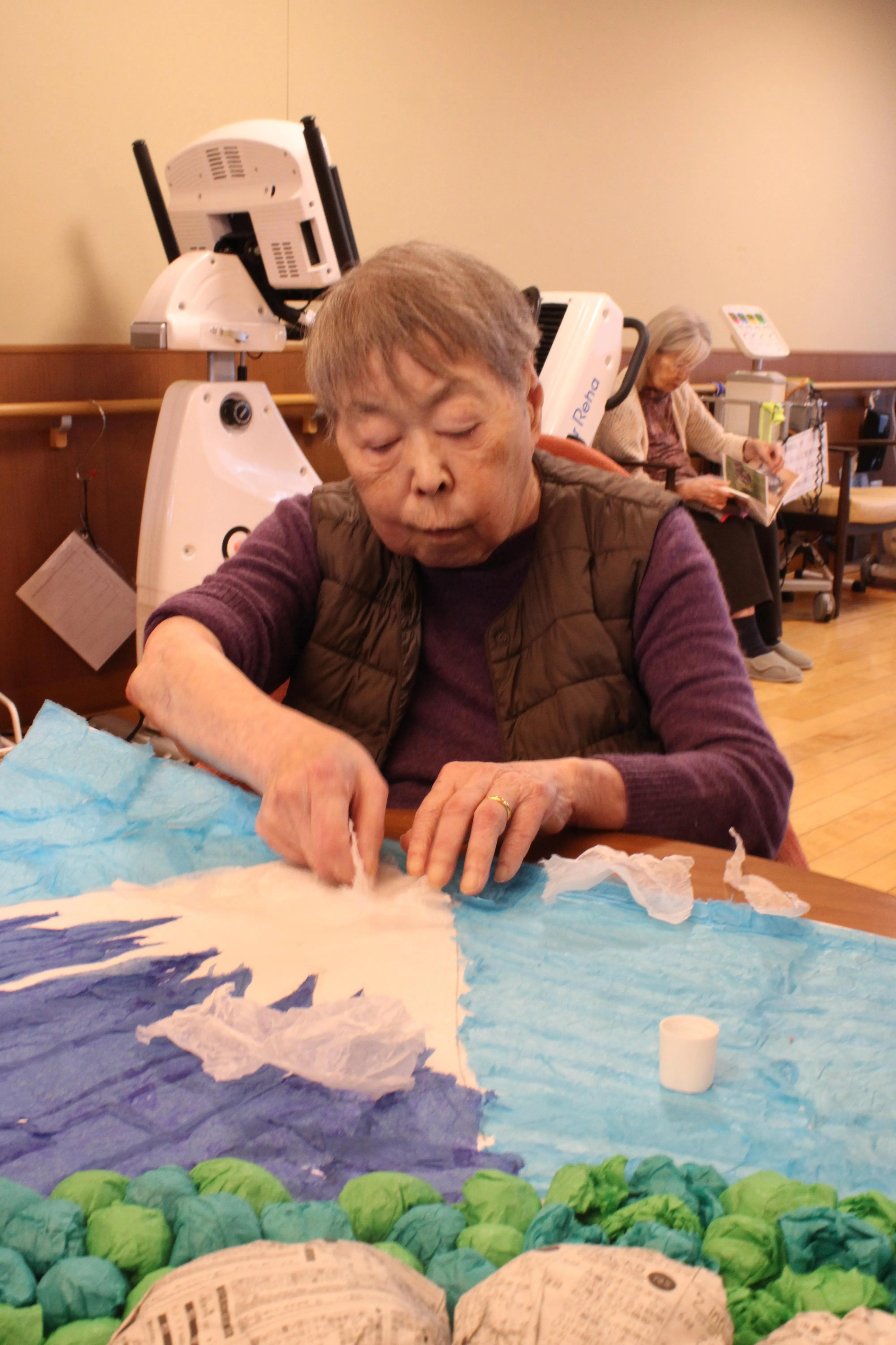 機能訓練:冬の壁画完成!富士山と温泉でほっこり