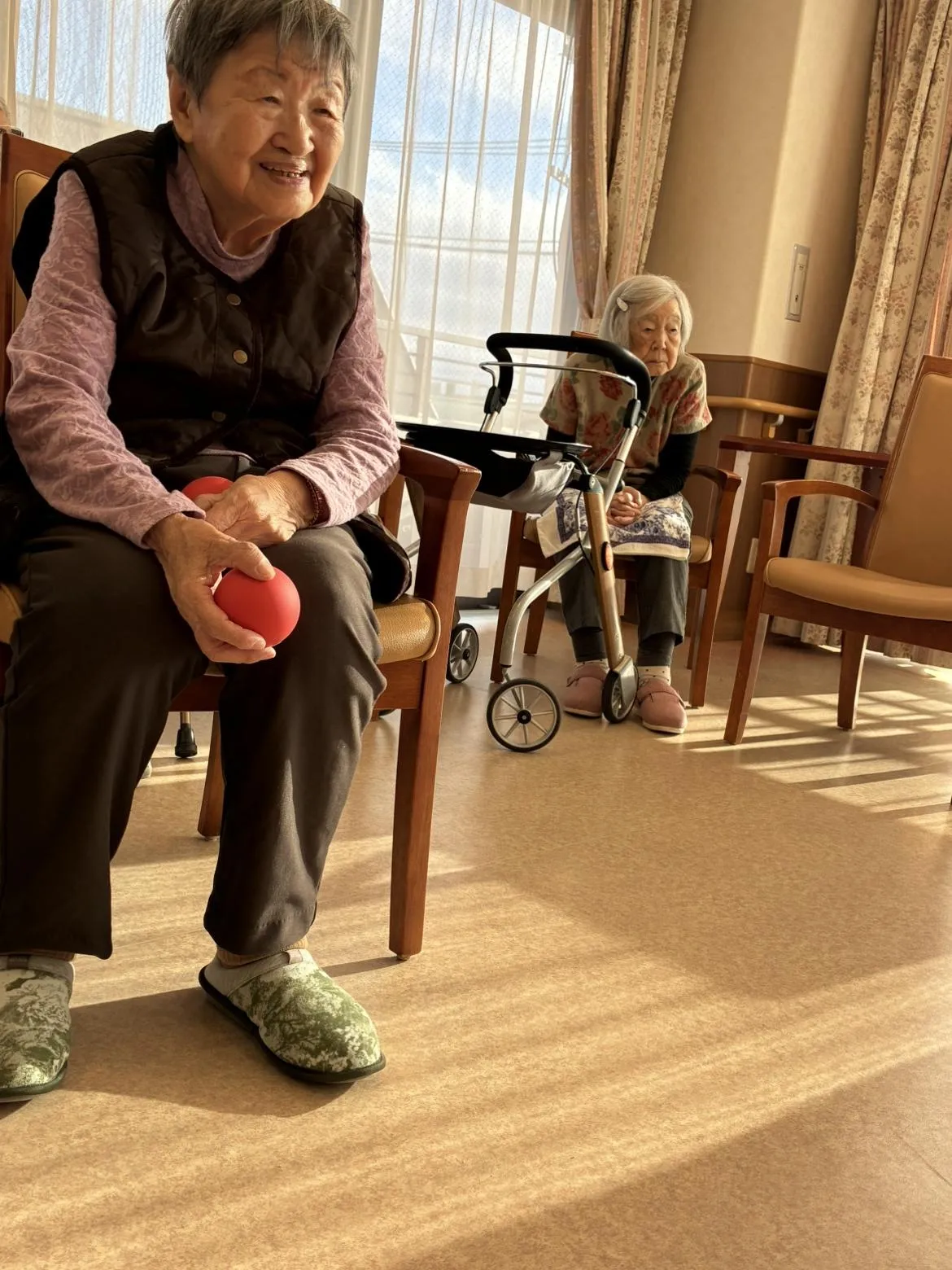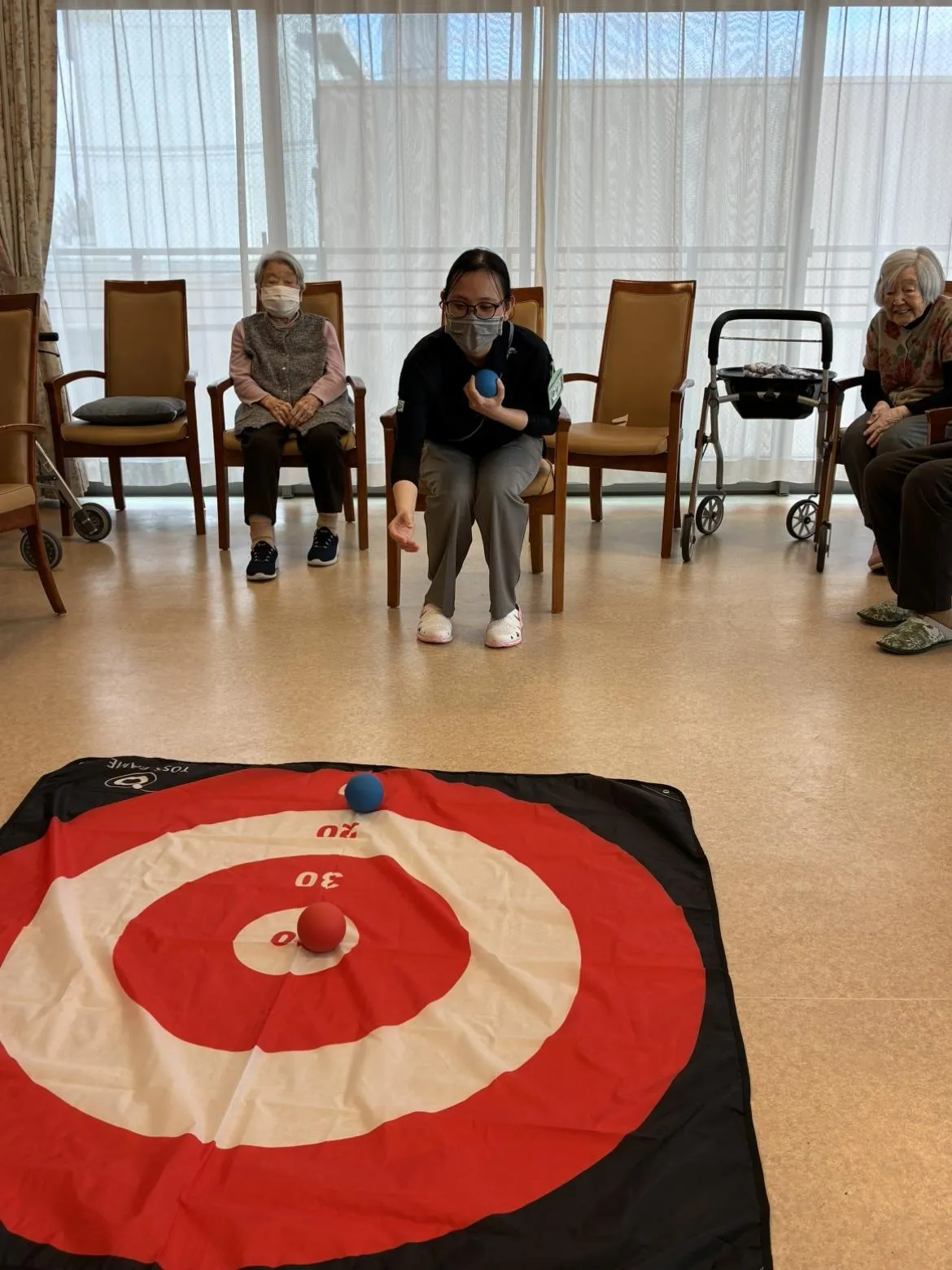お客様同士で「惜しい」「すごいね」と声を掛け合いながら、和やかで活気のある時間となりました。体を動かすことで自然と会話がうまれ、心身のリフレッシュにもつながるようです。