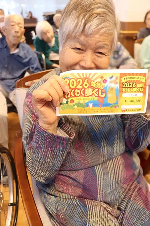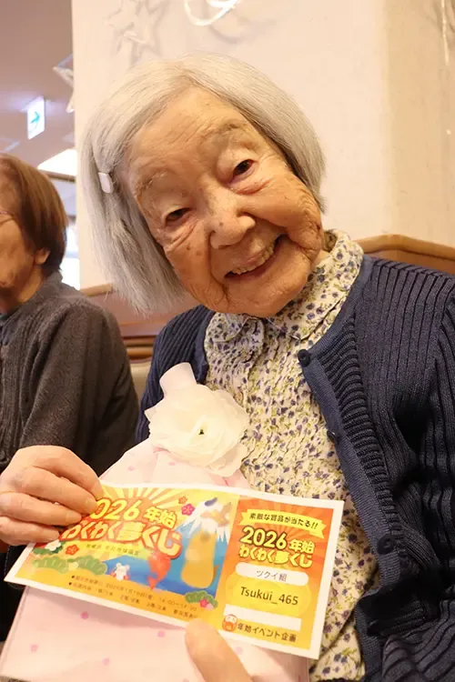 ツクイの他事業所と合同で、オンラインでつなぎくじ引き大会を開催しました。