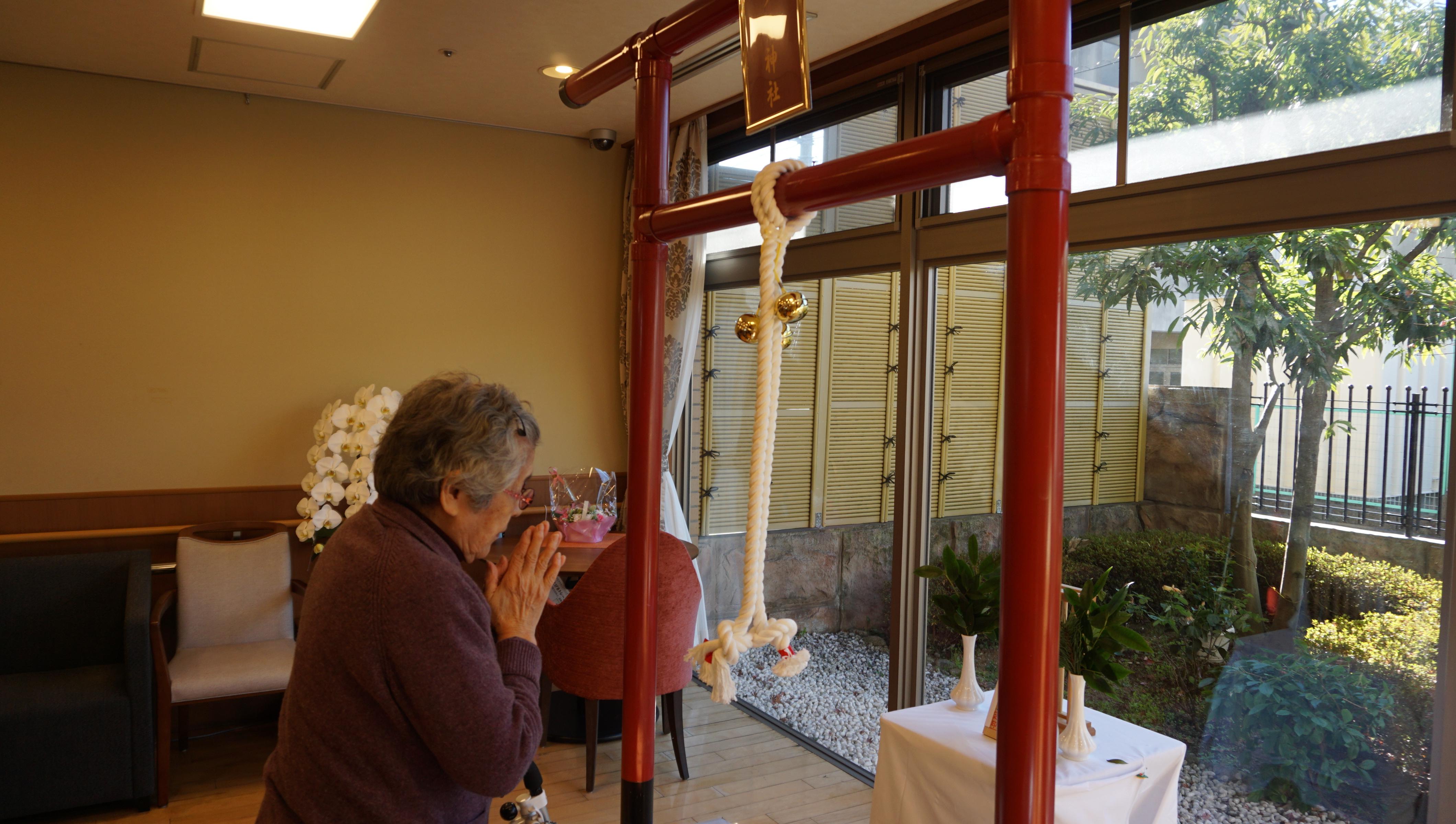 1階ロビーに、ツクイ神社を造りました。多くの方が参拝されました。