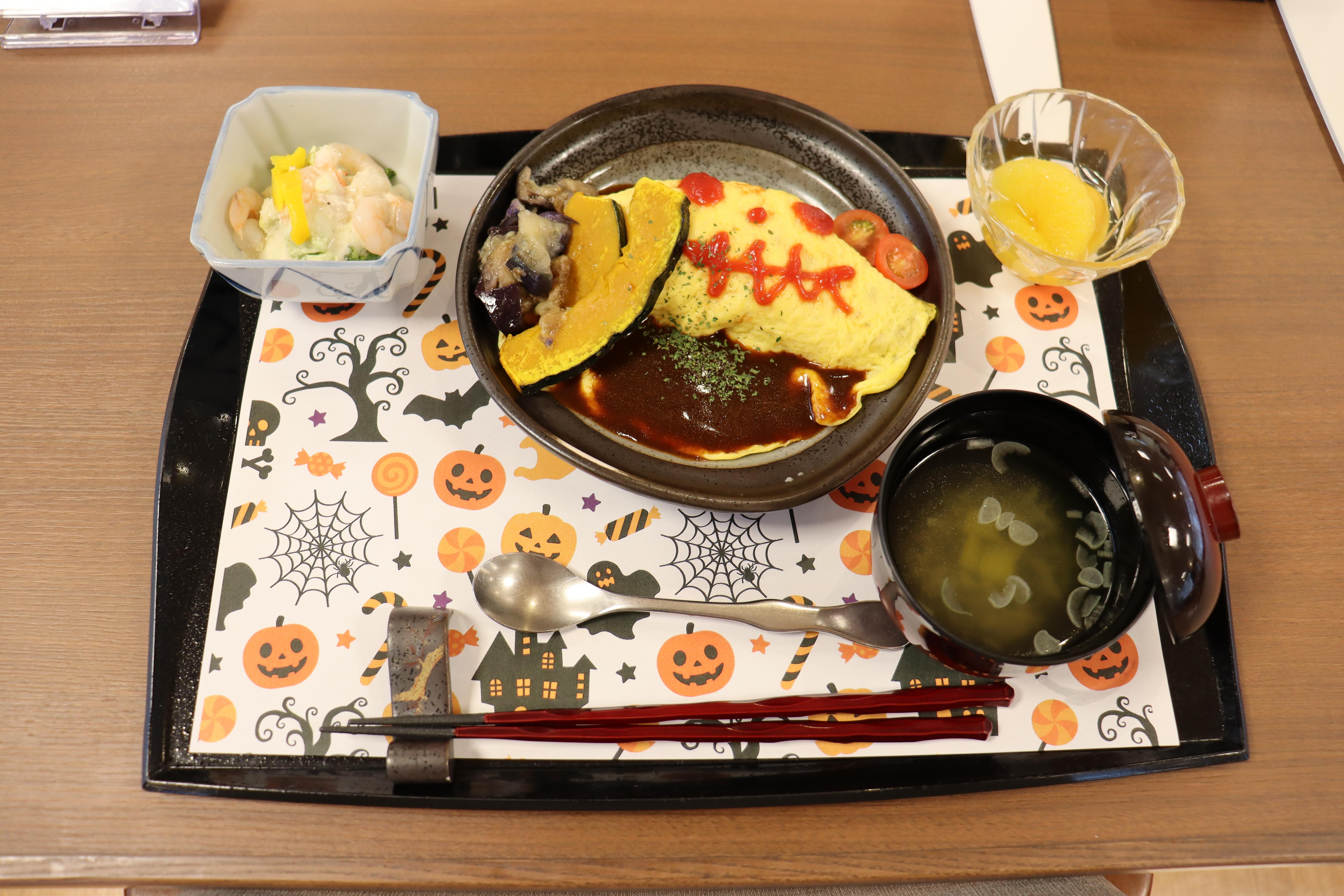 ハロウィンでは昼食に「オバケオムライス」を提供しました。見た目可愛く、味も美味しいと好評でした!