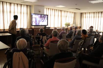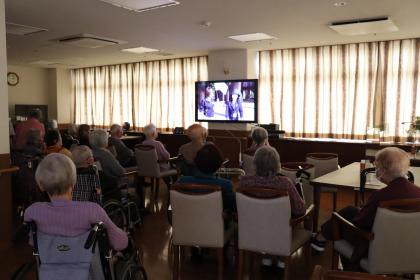 1階のレストランにて、仁和寺の紅葉の様子を皆さんに楽しんで頂きました。