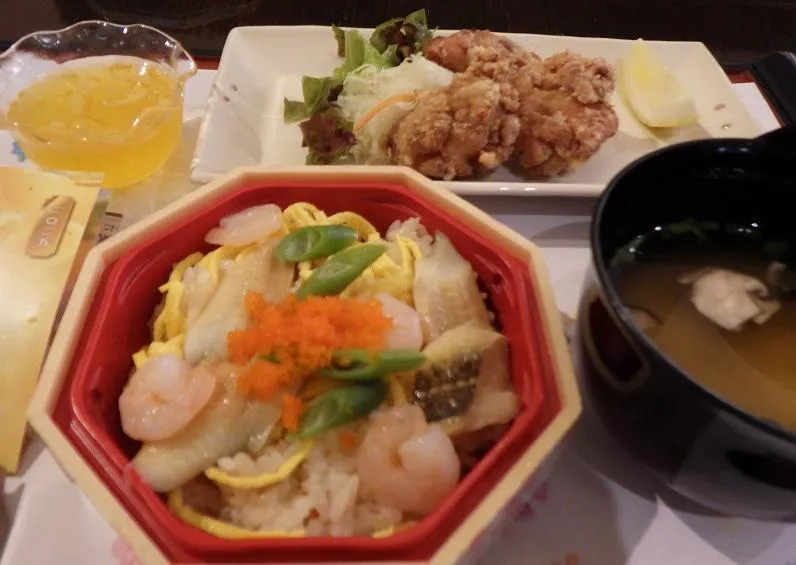 当施設では全国各地を巡り、お寿司を中心にその土地の郷土料理をお楽しみいただいています。10月は愛媛県の郷土料理をご紹介いたしました。『松山鮓』は、祝い事や訪問客をもてなす際に出されるお寿司だそうです。「柔らかい穴子がとても美味しかったわ」と喜びの声を沢山いただきました。他には鶏料理が盛んな東予地方の郷土料理『せんざんぎ』という鶏のから揚げ、全国トップの生産量を誇るミカンを使ったみかんゼリーのマーマレード載せなど、様々な愛媛県にまつわる味を楽しんでいただきました。