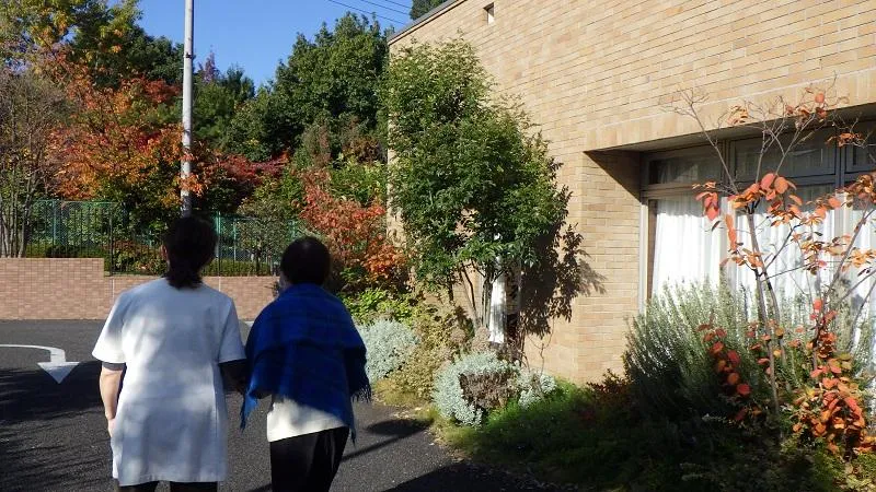 良く晴れた晩秋の昼間、お客様と紅葉を見にお散歩しました。澄んだ空気と青い空、そして暖かな日差し。「気持ちいいわね~。幸せを感じるわ~」と大変喜んでいらっしゃいました。