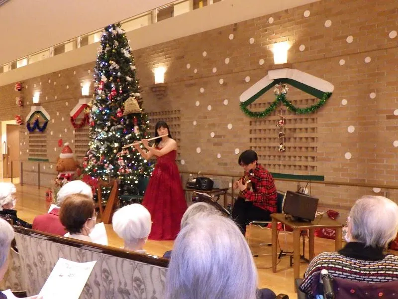 クリスマスの午後は、フルートとギターのデュエット演奏会をお楽しみいただきました。