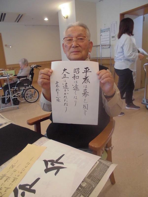 元旦とは違い新しい時代へ心機一転、書初めを行いました。