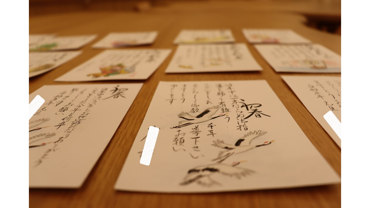 お客様が画用紙を切り取り、手書きの年賀状を作成されました!すごいです!