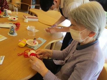 毛糸を巻きつける作業はお手のもの、器用に手芸を楽しんでおります。