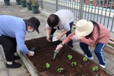 小さい畑では、カボチャと二十日大根の種まきを行いました。